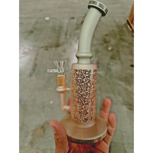 10" Carved craft Glass Bongs Smoking Glass Water Pipe with 14mm Round handle